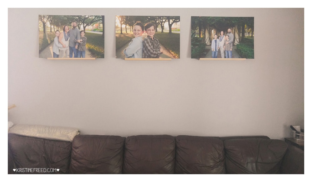 3. These are probably my favorite! Three 20×30 mounted prints of our family pictures we took for my parents for Christmas. One of my favorite locations with some of my favorite people. We found the wooden ledges at IKEA and they worked perfectly to set the images on. This is a work in progress- I still want to add some shelves under these where I can place smaller frames, knick knacks, etc.